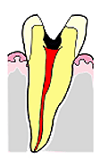 - 神経までむし歯が達してしまった状態、こうなると痛みがでます。処置としては神経をとり、薬をつめて、金属製の冠をかぶせます。歯は神経をとると、健康な歯に比べてもろくなりますからC2の段階までに治療をする方がよいでしょう。
