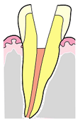 - むし歯を治療せずに放置していたために、根のみになっている状態。歯髄は死んで根の先端に膿がたまり、また痛みが出ることもあります。こうなると歯を抜かなくてはいけません。