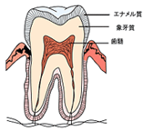 エナメル質:体の中でいちばん硬い組織です。