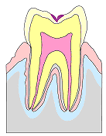 歯髄(俗称は神経):神経と血管があります、痛みを感じる部分です。