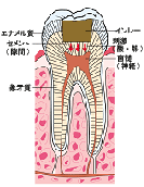 象牙質:エナメル質の次に硬い組織で、むし歯になると痛みを感じます。