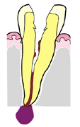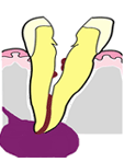 - むし歯を治療せずに放置していたために、根のみになっている状態。歯髄は死んで根の先端に膿がたまり、また痛みが出ることもあります。こうなると歯を抜かなくてはいけません。