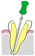 2. 根の中が消毒され、症状が落ち着くと、空洞になっている管の中に感染を防ぐための防腐剤をつめます。